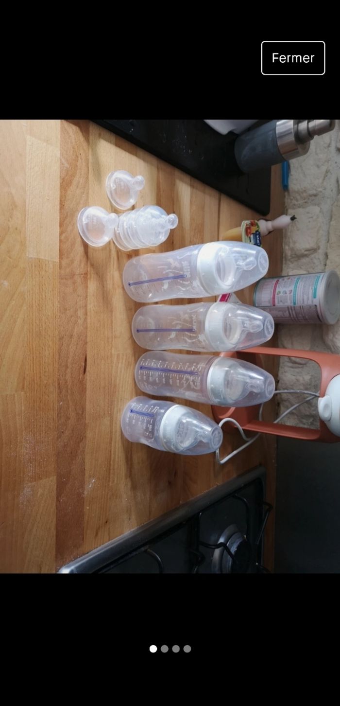 3 grand biberons de 300ml et 1 de 150ml 5 tétines M 5 tétines S Servi 2 mois Acheté neuf à orchestra