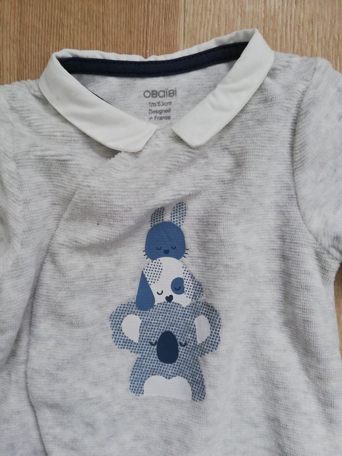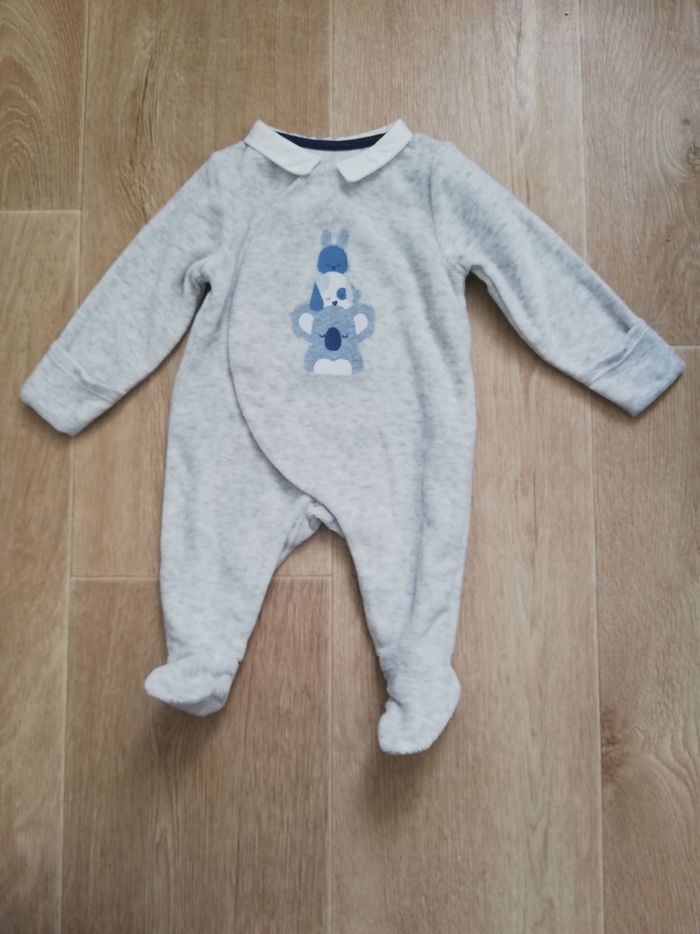 Ouverture par devant et manches longues. Bout de manches anti-griffures (se referme) 1 mois 53 cm. Jamais porté.