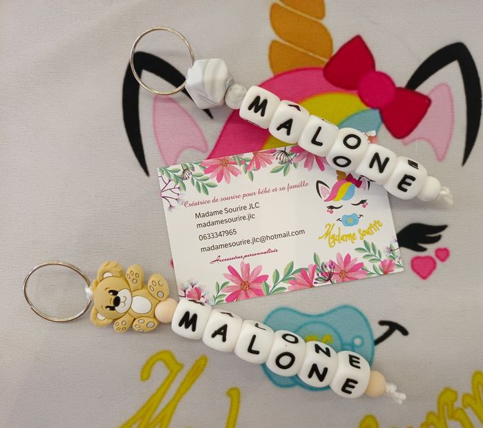 Coffret de 2 portes clés pour accrocher vos clefs en toute sécurité, composé de perles en silicone alimentaire et/ou bois naturel. 100% personnalisable, énormément de choix de clips, perles, etc… Envoyez-moi un message afin de créer main dans la main votre accessoire idéal.