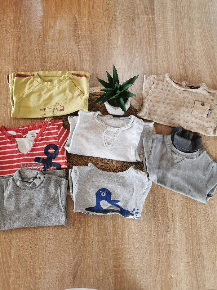 Lot de 6 tee shirts et 1 pull de divers marques, le tout en bon état général.