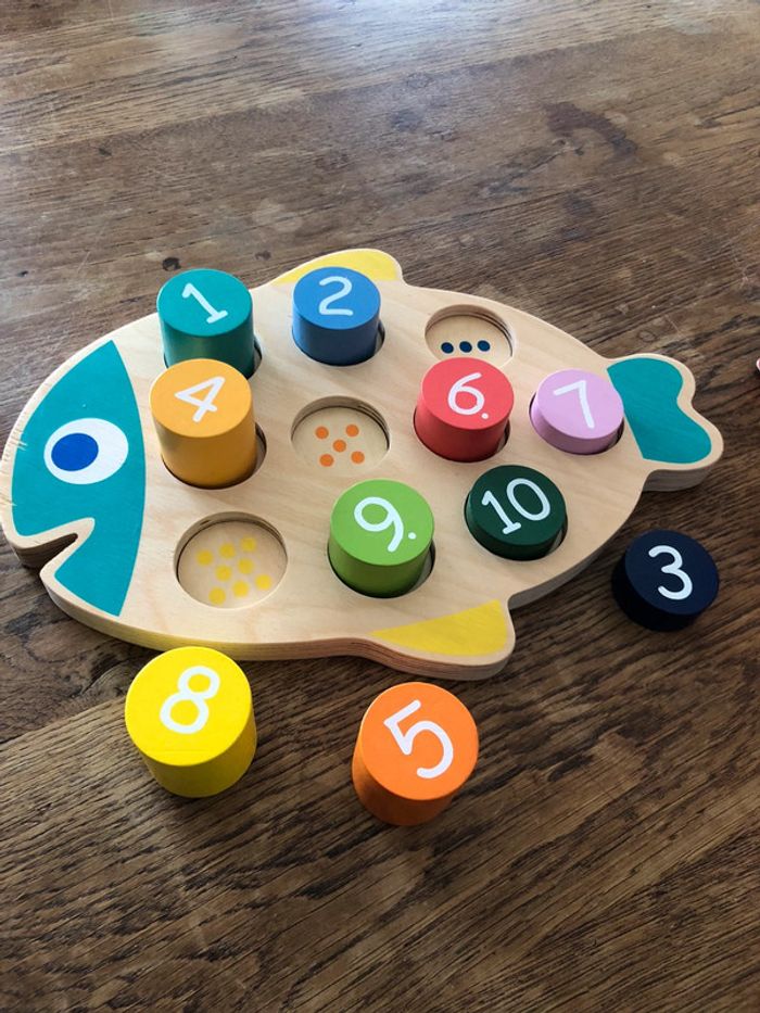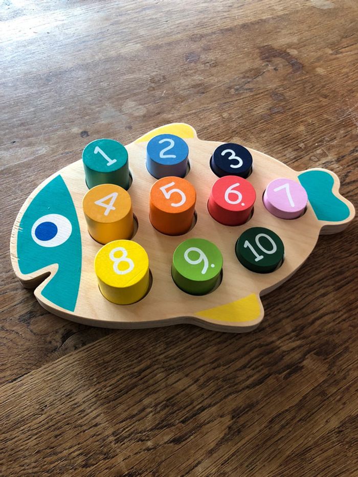 Vends jeu en bois pour apprendre à compter en forme de poisson Complet