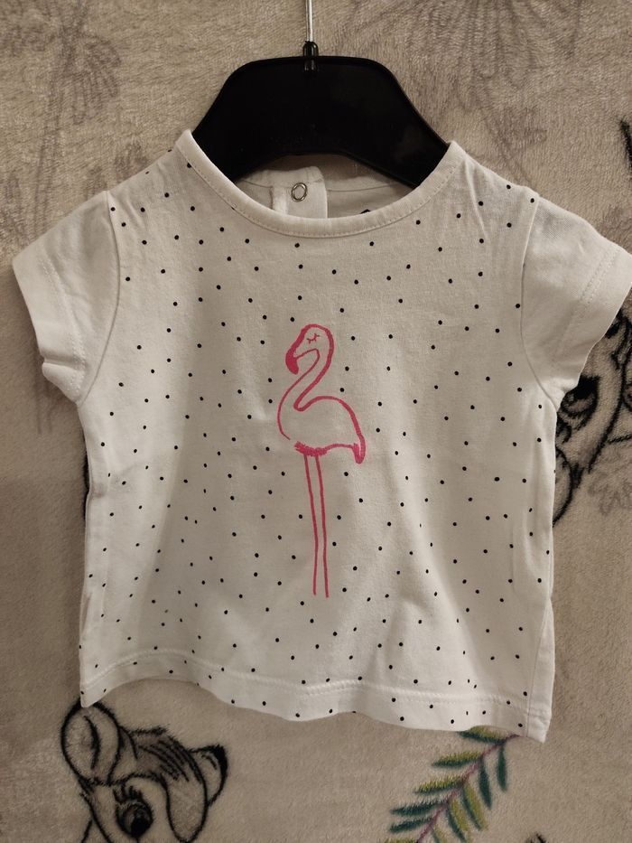 Tee shirt avec motifs flamant rose jamais porté juste lavé en taille 3 mois