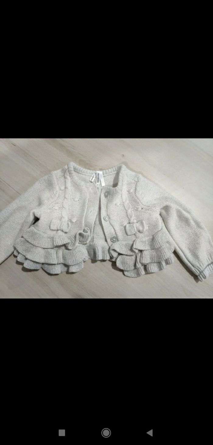 Très beau gilet gris pailleté brillant à froufrou 6 mois fille Orchestra - photo numéro 5