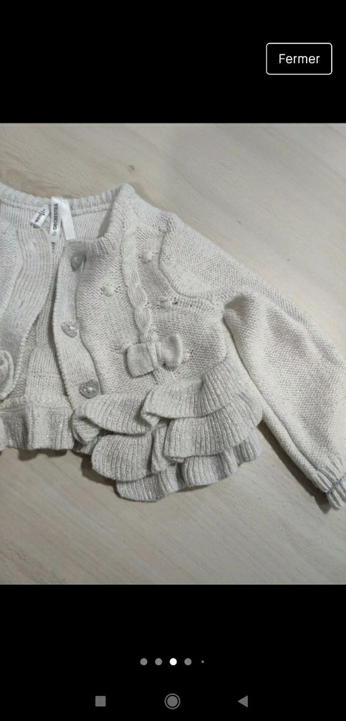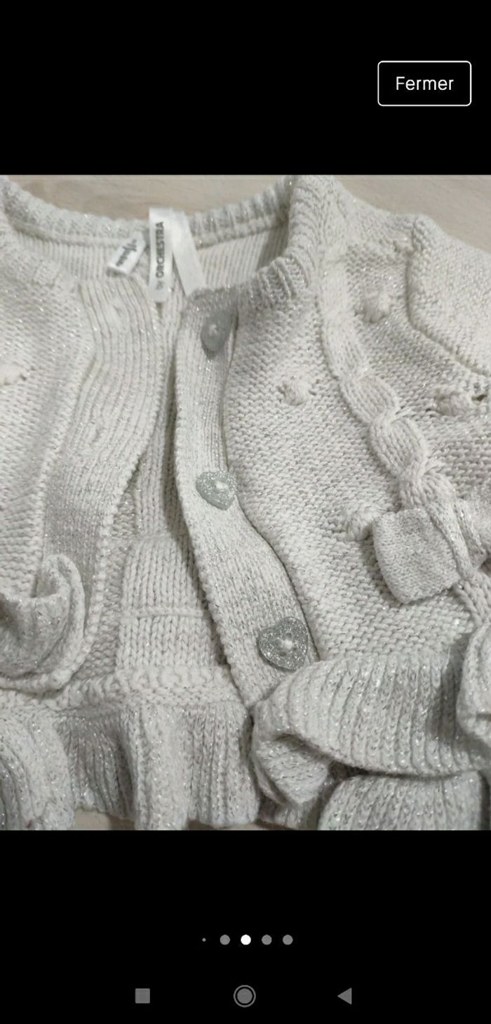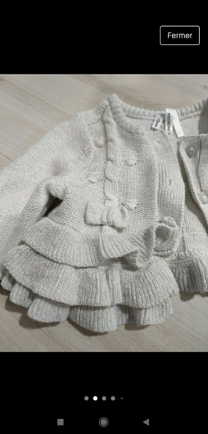 Très beau gilet gris pailleté brillant à froufrou 6 mois fille Orchestra - photo numéro 6