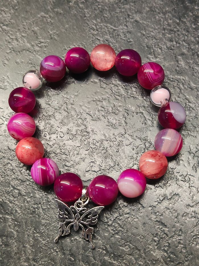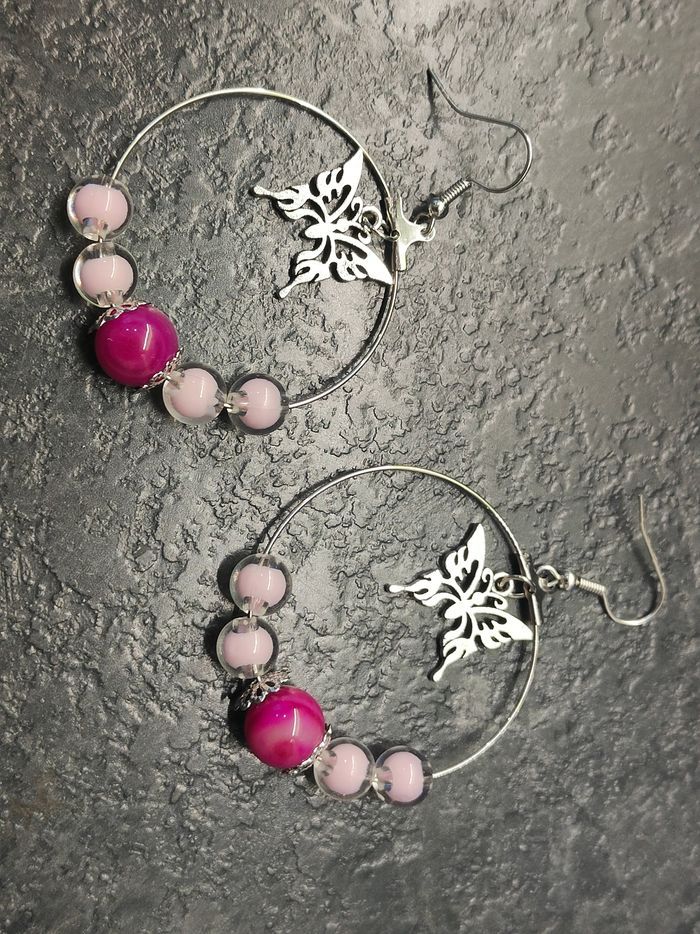 Parure de bijoux Bracelet extensible en perles diamètre 10 mm breloque papillon Boucles d'oreilles pendantes avec breloque papillon Neuves jamais portées