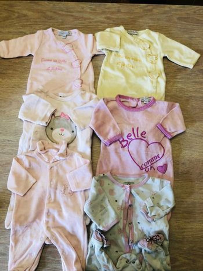 Lot de 6 pyjamas : 5 polaires 1 léger Idéal du prématuré jusqu’au 1 mois.
