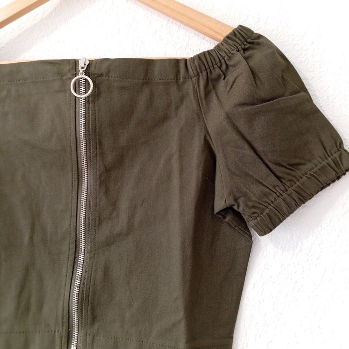 Top crop a epaules dénudées et fermeture éclair. Taille M. Couleur Kaki Vert Militaire - photo numéro 5