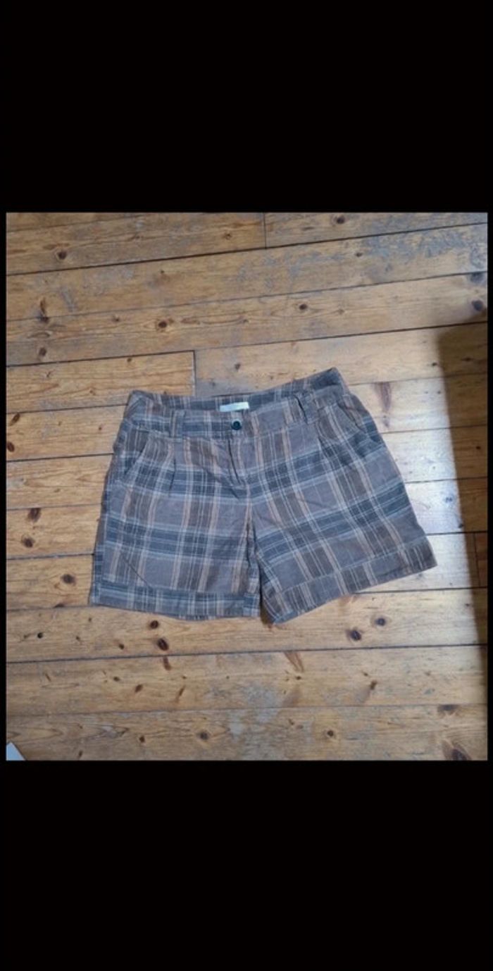 Taille 38 Toucher velours Motif écossais Marron Bouton + zip Très bon état #shortfemme #shorthiver #ecossaisfemme