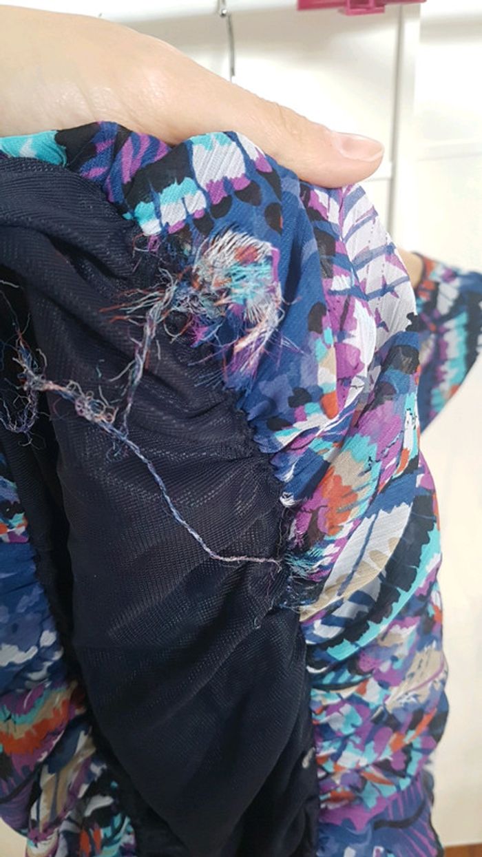 Élastique dans le bas Légère Décousue sur 2x2cm dans le bas . Ne se voit pas porte et peut être recousu en qq points , avis aux vinties qui se débrouillent en couture .