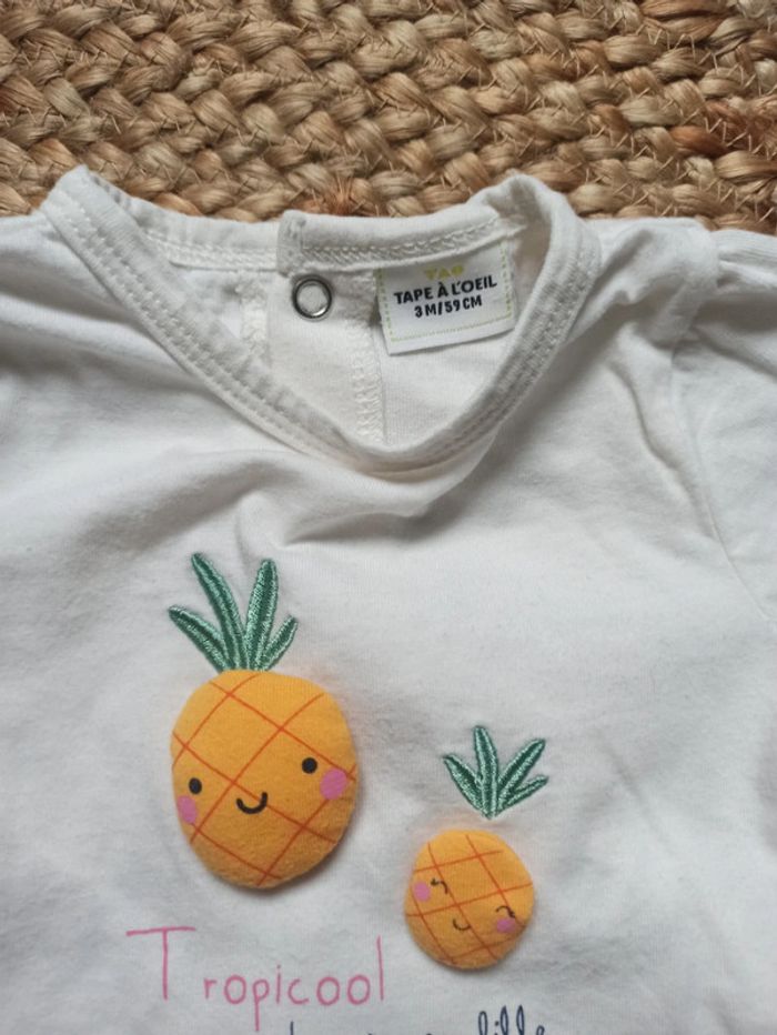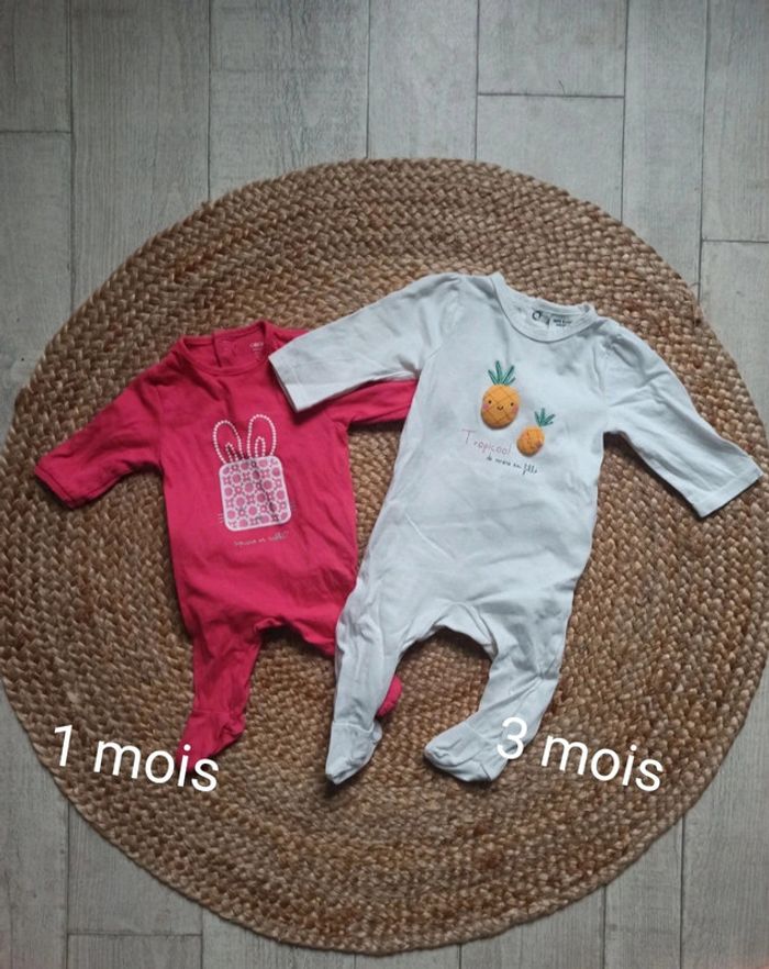-Pyjama rose Obaibi Taille 1 mois -Pyjama blanc ananas Tape à l'oeil Taille 3 mois Très bon état. #1moisEmy1811 #3moisEmy1811