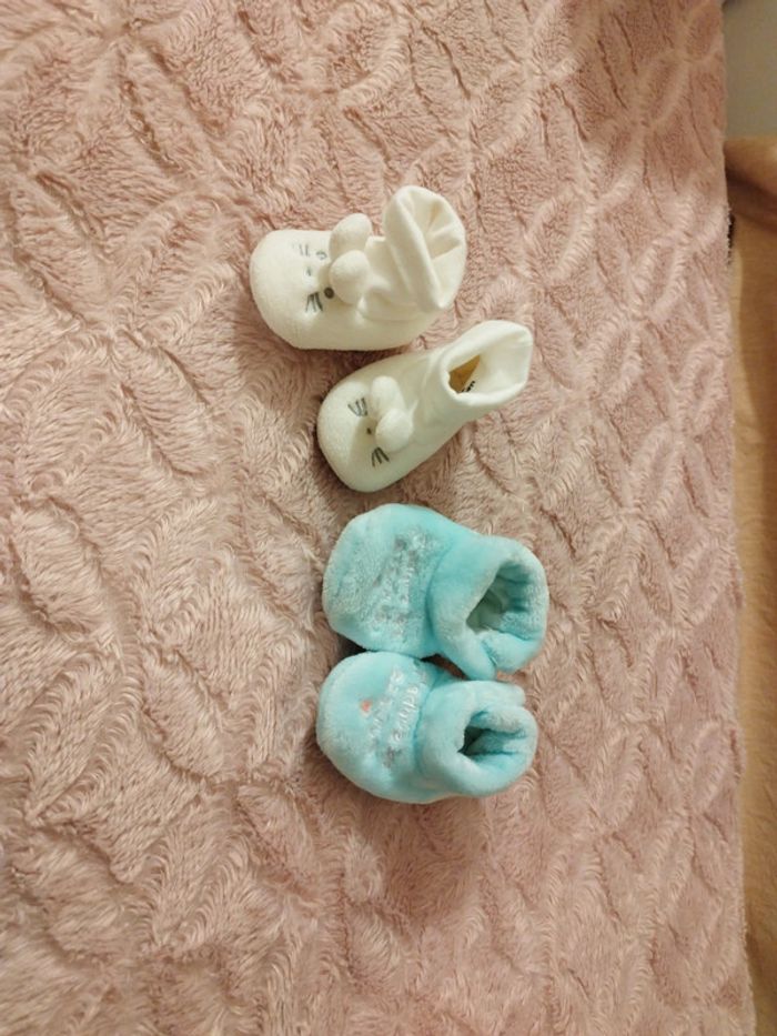 Lot de deux paires de chaussons bébé.