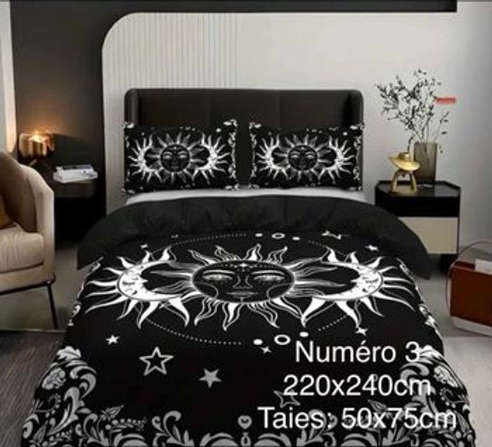 Housse de couette avec 2 taies 220x240cm Taies: 50x75 Polyester Neuve et emballée dans emballage origine J’ai d’autres modèles