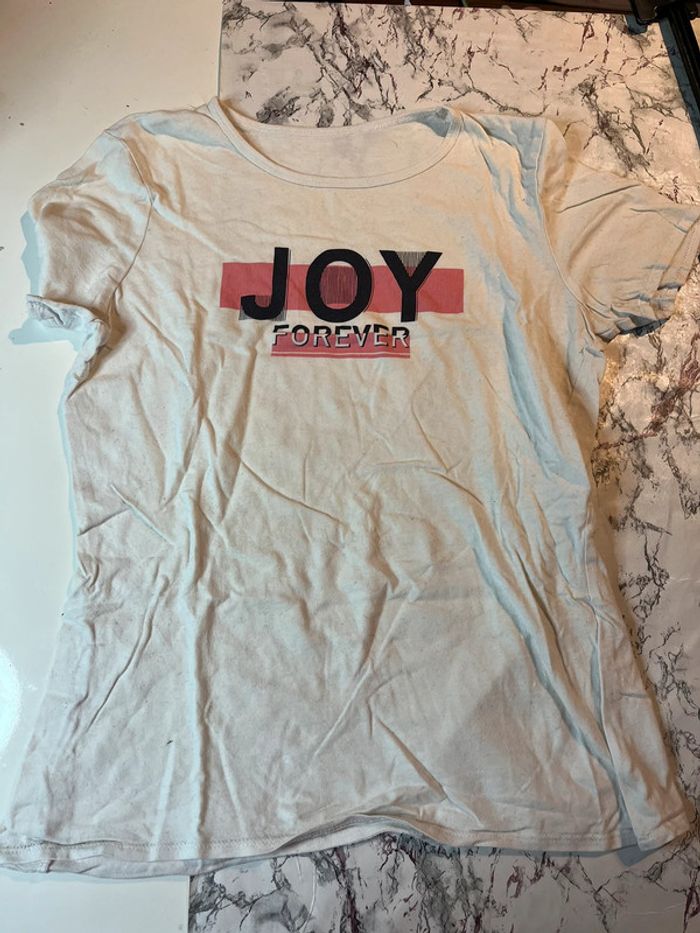 T shirt décathlon rose et blanc « Joy forever » Taille S/M Neuf sans étiquette