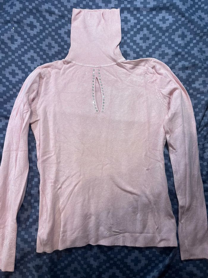 Pull rose à strass taille 36/S Porté quelque fois état très correct (manque 2 strass)