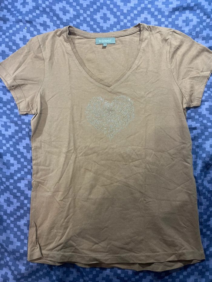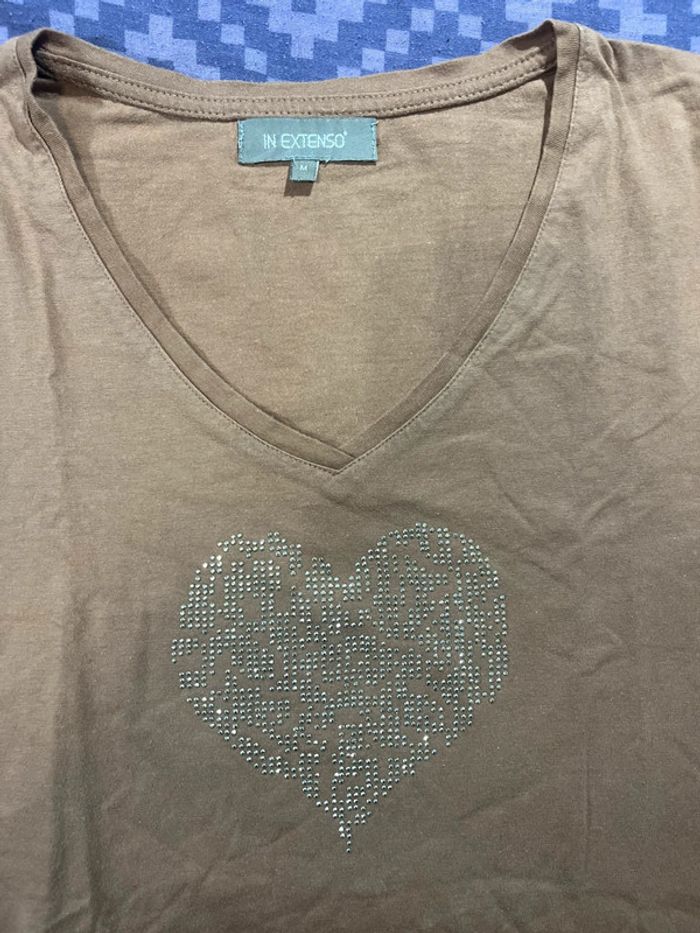 T shirt marron clair à motif coeur - In extenso Taille M/38 Comme neuf (sans étiquette) #nawelb430_tailleM