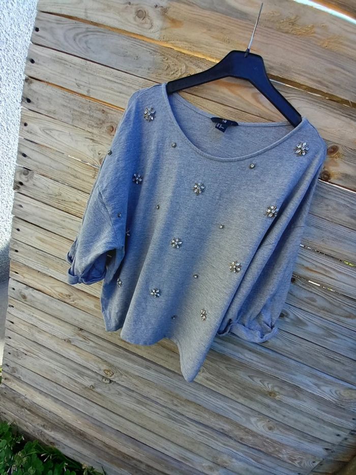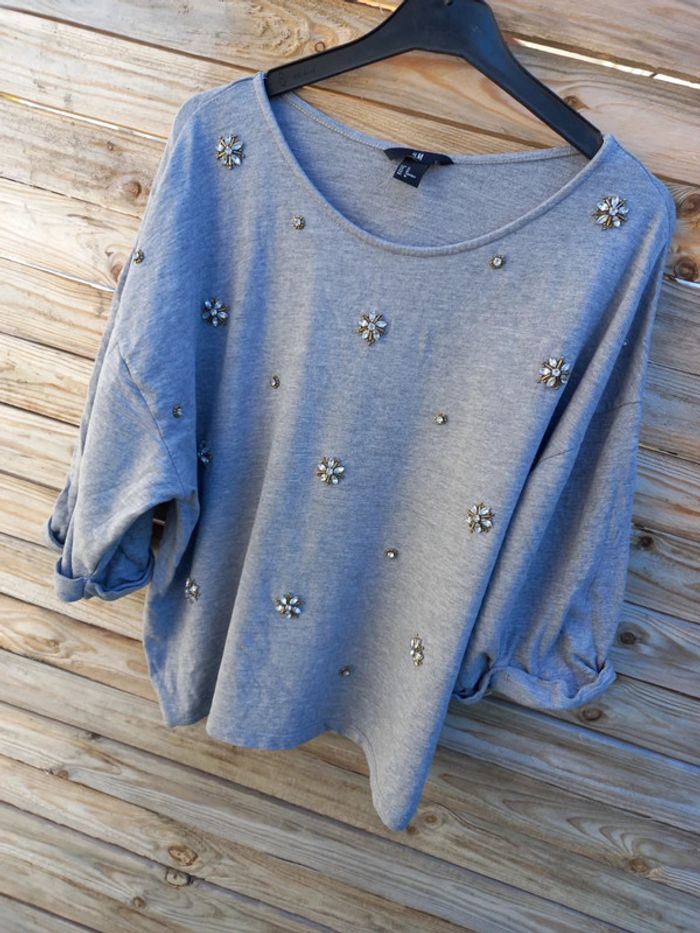 #haut #typesweat #original #hetm #hm #femme #gris #breloque