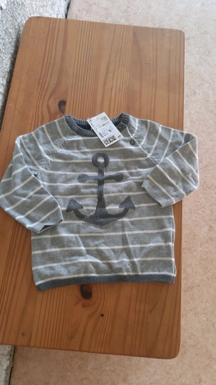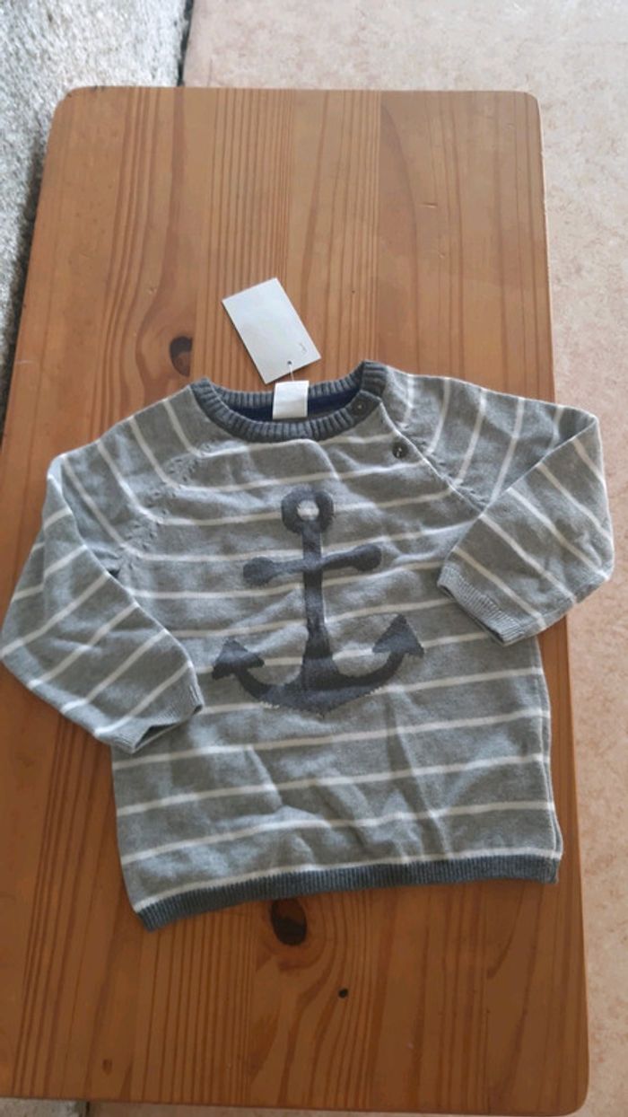 #pull #misaison #hetm #hm #babyboy #ancre #marin #rayure #gris #bebegarcon #12m #12mois #1an #neufavecetiquette Acheter 10e