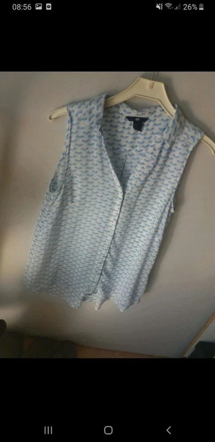 #blouse #fluide #hetm #hm #tresbonetat #fluide #blancbleu #motif #cil #fauxcil #originale #taille38