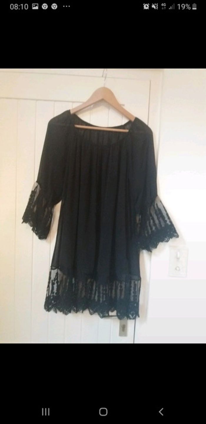 #blouse #tunique #dentelle #tresbonetat #noire #voilage #fluide #originale #taille40