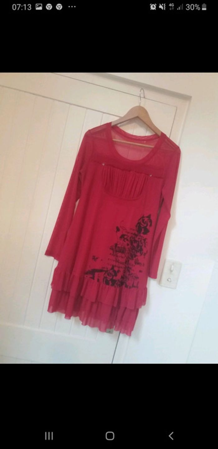 #robetunique #tunique #rouge #motif #voilage #originale #tresbonetat #froufrou #taille40