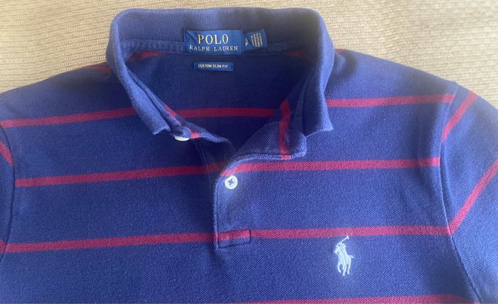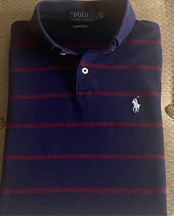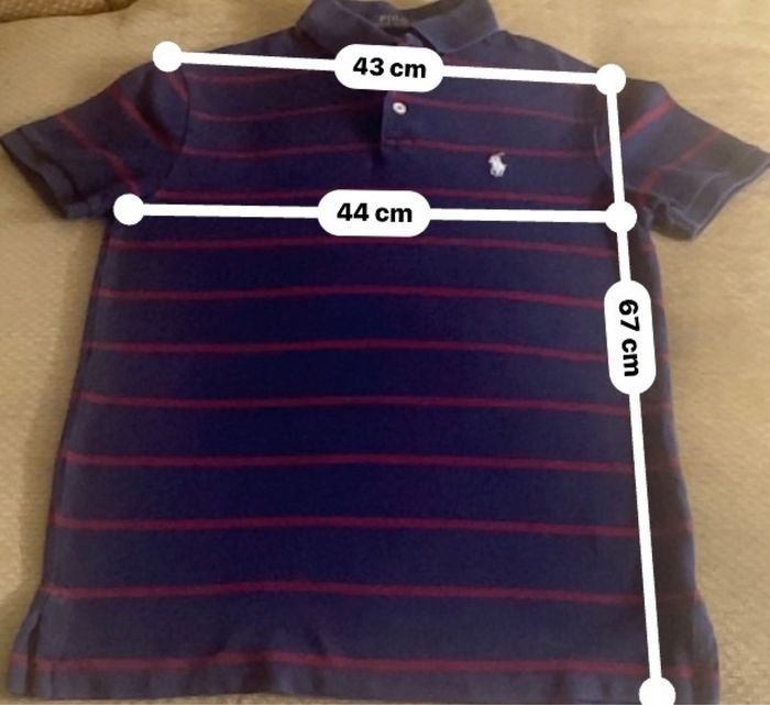 Polo ralph lauren couleurs : marine et rouge manche courte Taille S/P voir les mesures sur une des photos En excellent état pas de taches ni de trou.