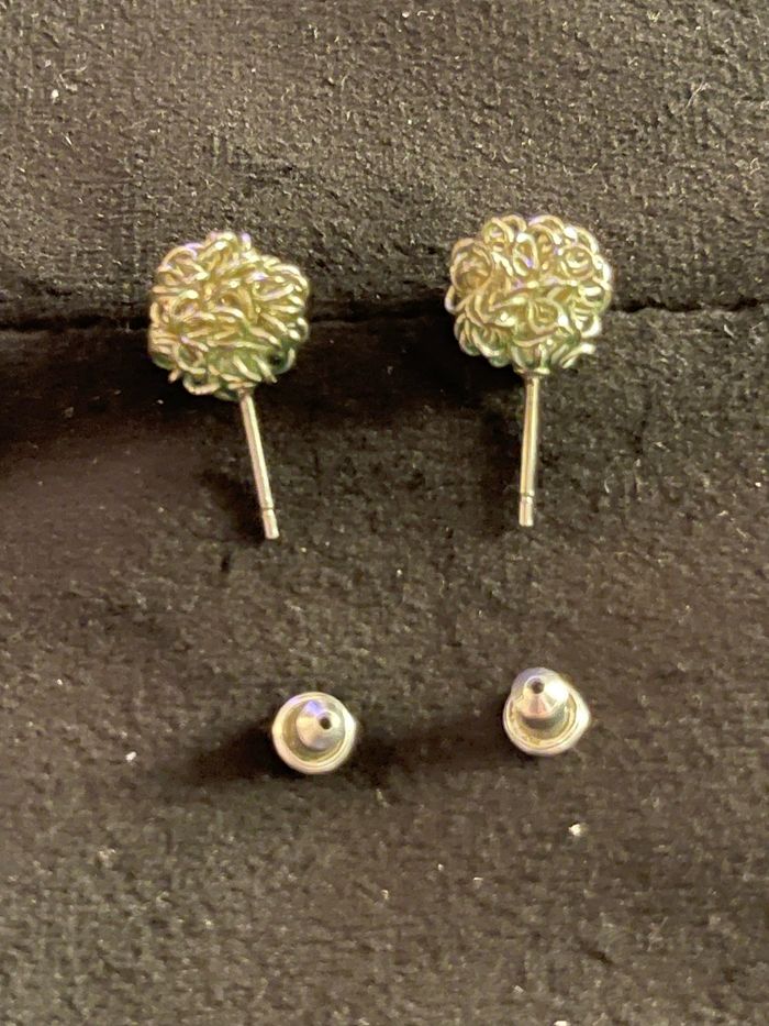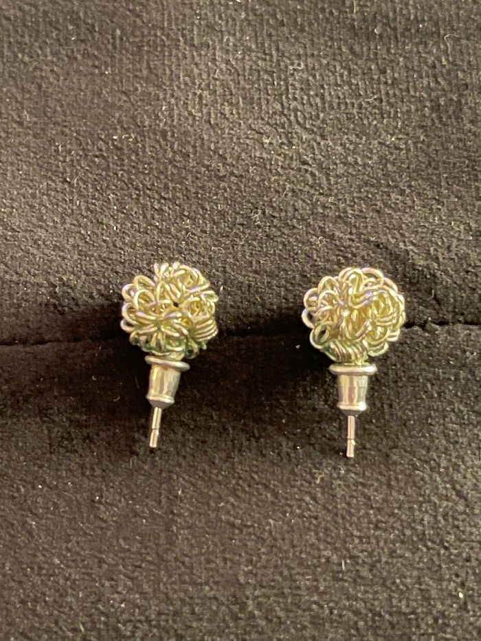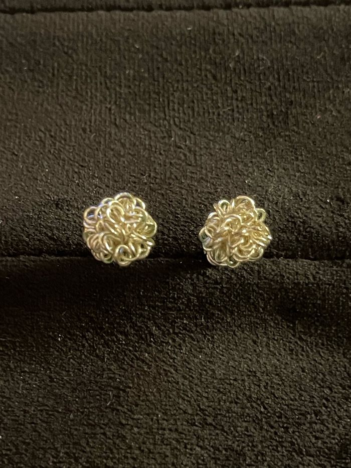 boucles d’oreilles boules formées de filaments argentés