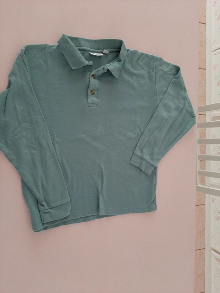 Polo manches longues vert amande 12ans