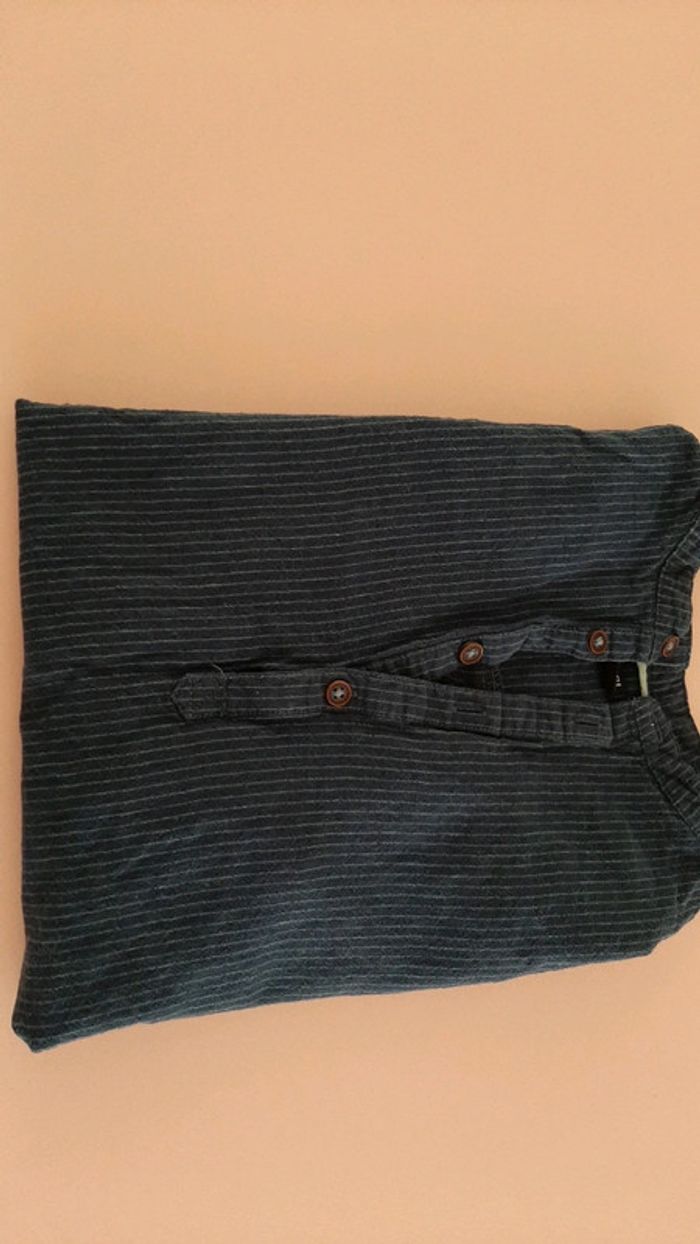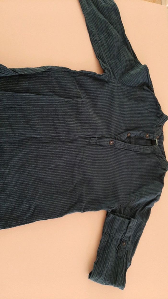 Chemise manches longues garçon bleu Marine rayée col tunisien 12 ans - photo numéro 2