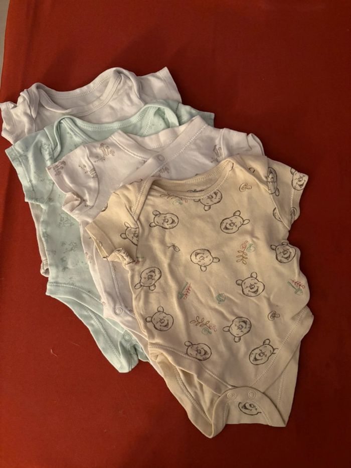 Lot avec 4 body manches courtes Trois Disney de marque primark et le dernier de marque inconnu Taille 0-3 mois - 62 cm