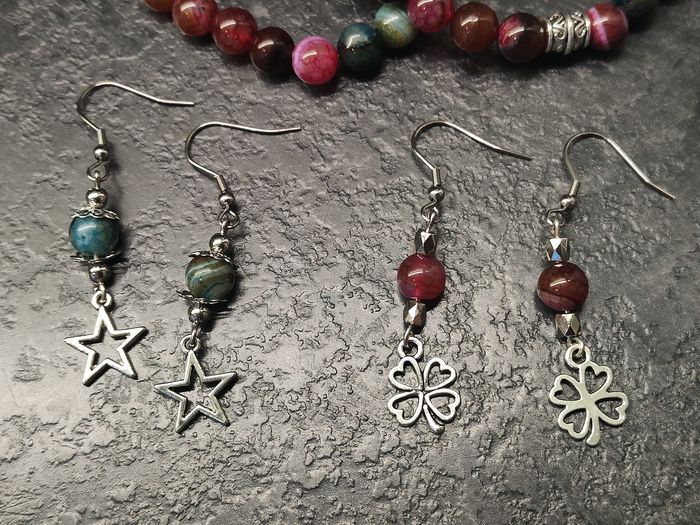 Parure Duo Étoile et Trèfle A offrir et / ou à s'offrir 2 bracelets extensibles 2 paires de boucles d'oreilles pendantes Neuves jamais portées