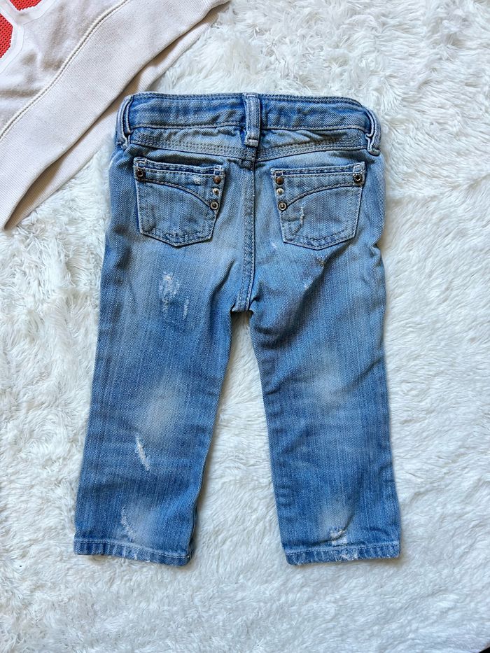 Ensemble 12 mois en très bon état Pull Blanc avec écriture brodée sans marque Jean effet destroy « DIESEL »