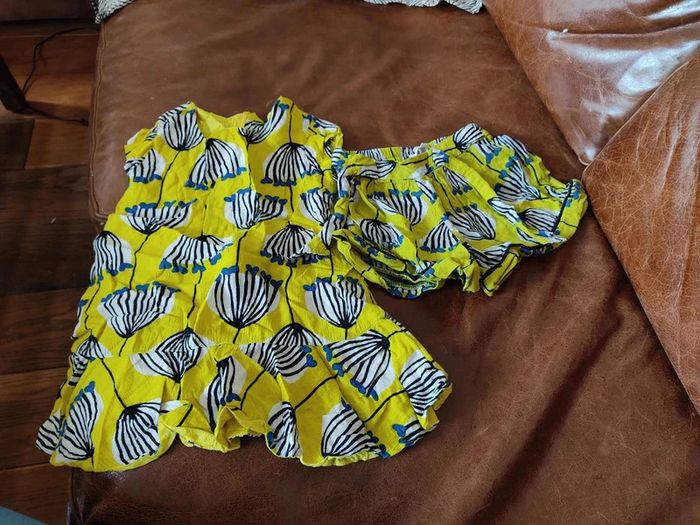 Ensemble robe + short catimini Ensemble robe + short catimini. Robe en parfait état. Le jaune du short a légèrement foncé mais ça ne se voit pas s'il n'est pas à côté de la robe. Taille 3 ans. #mathigelfille3ans