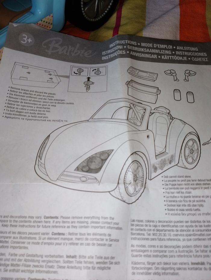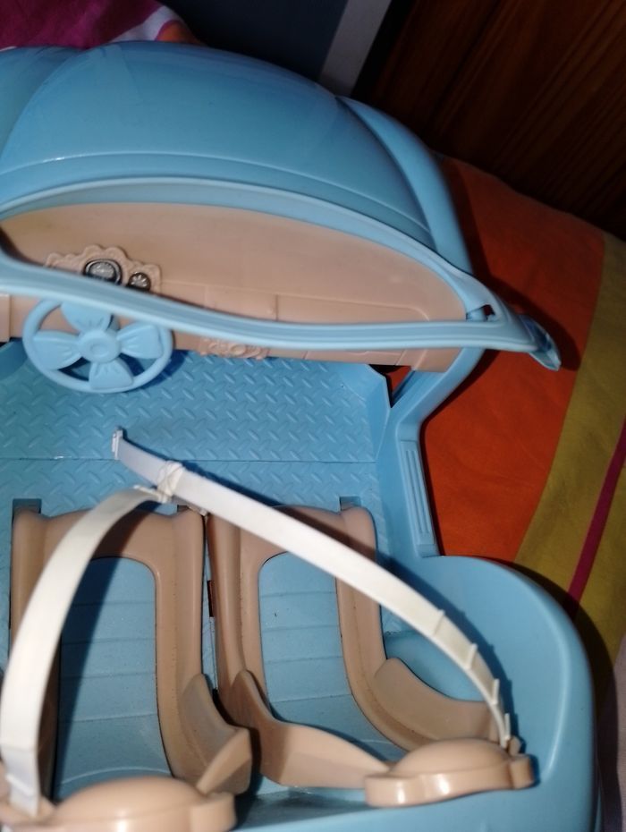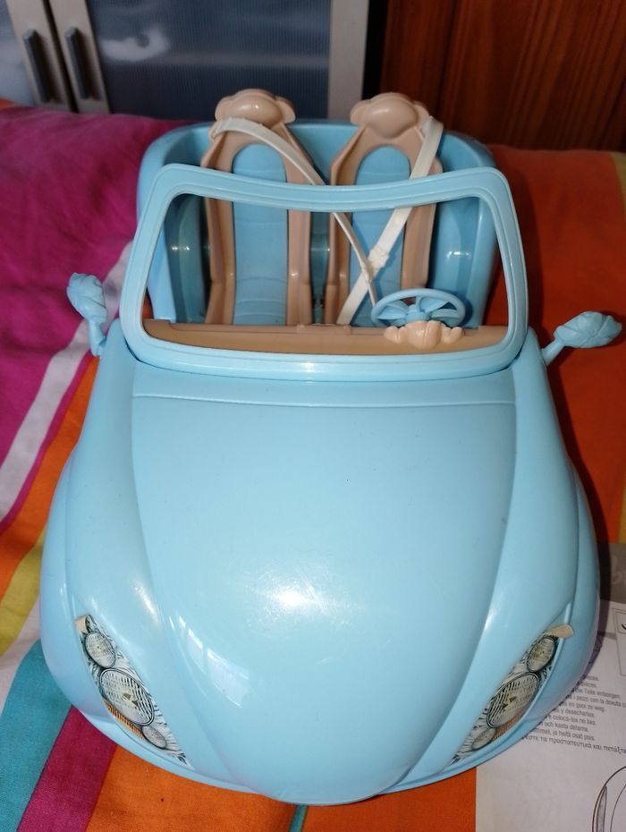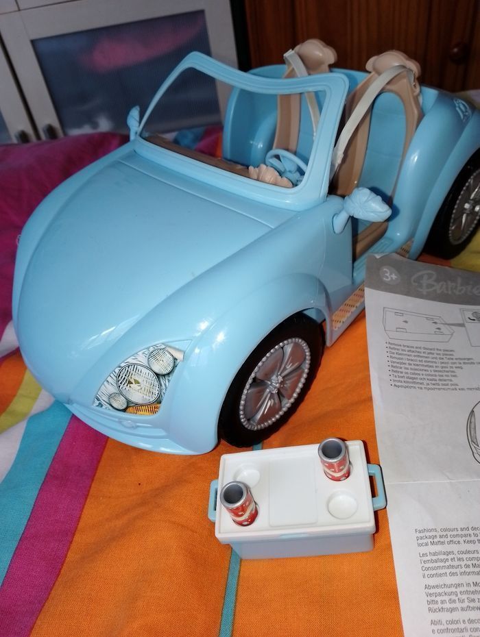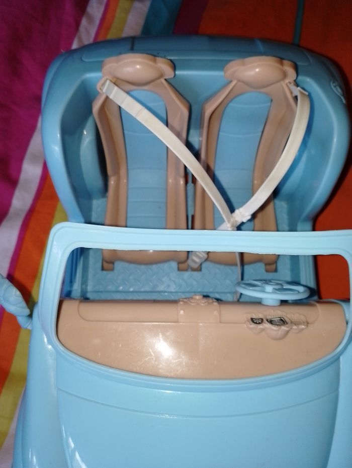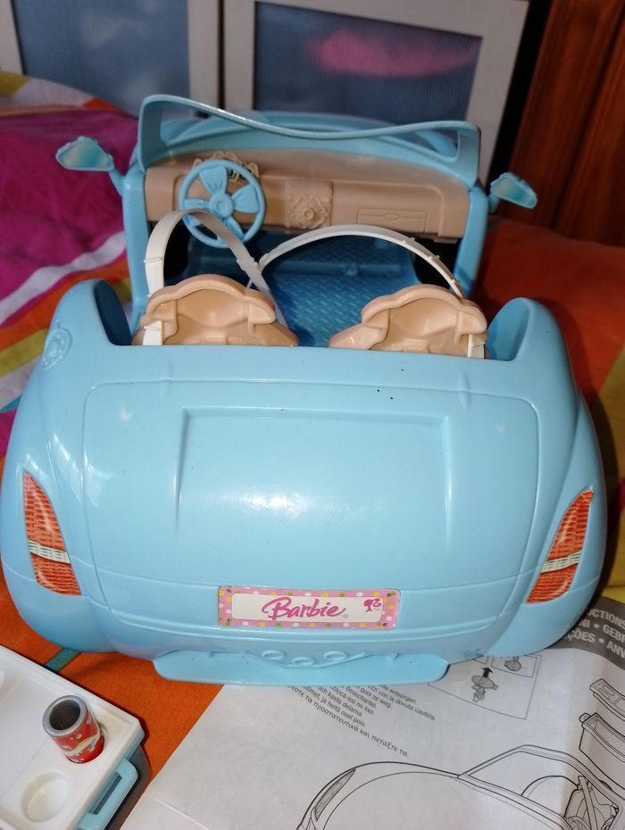 Voiture cabriolet bleu barbie En très bon état mise à part quelques autocollants décoller voir photos Il aurait pu être complet mais manque la barbie d'origine