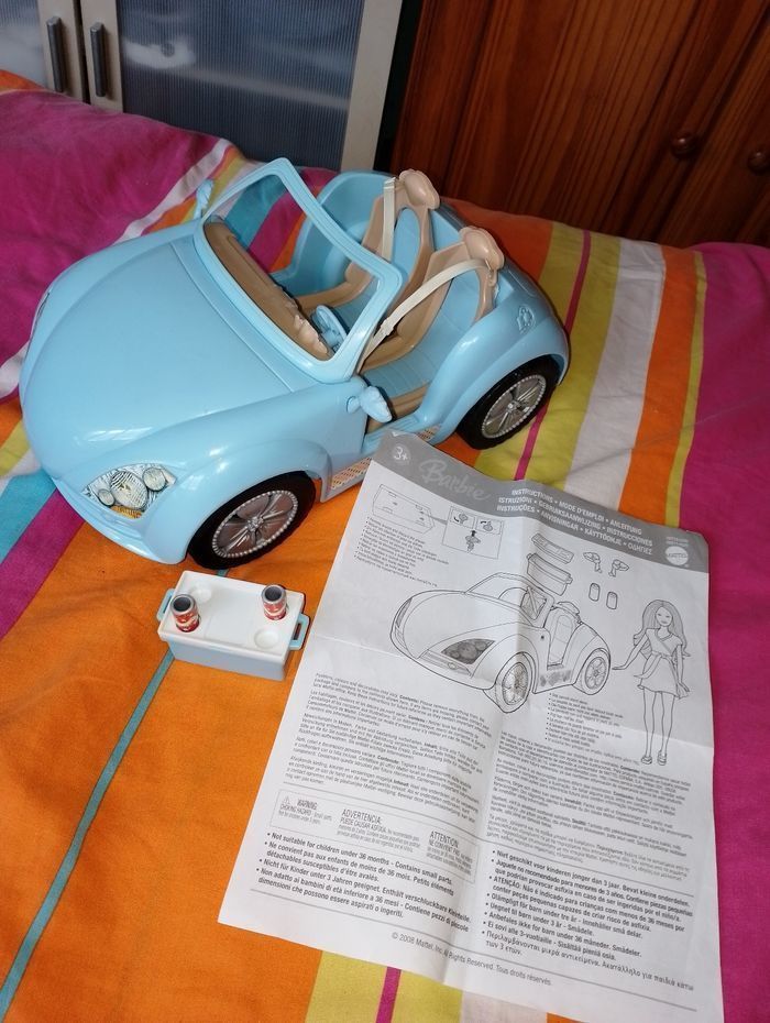 Voiture cabriolet bleu barbie - photo numéro 1