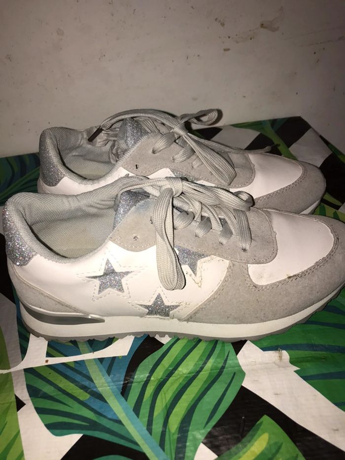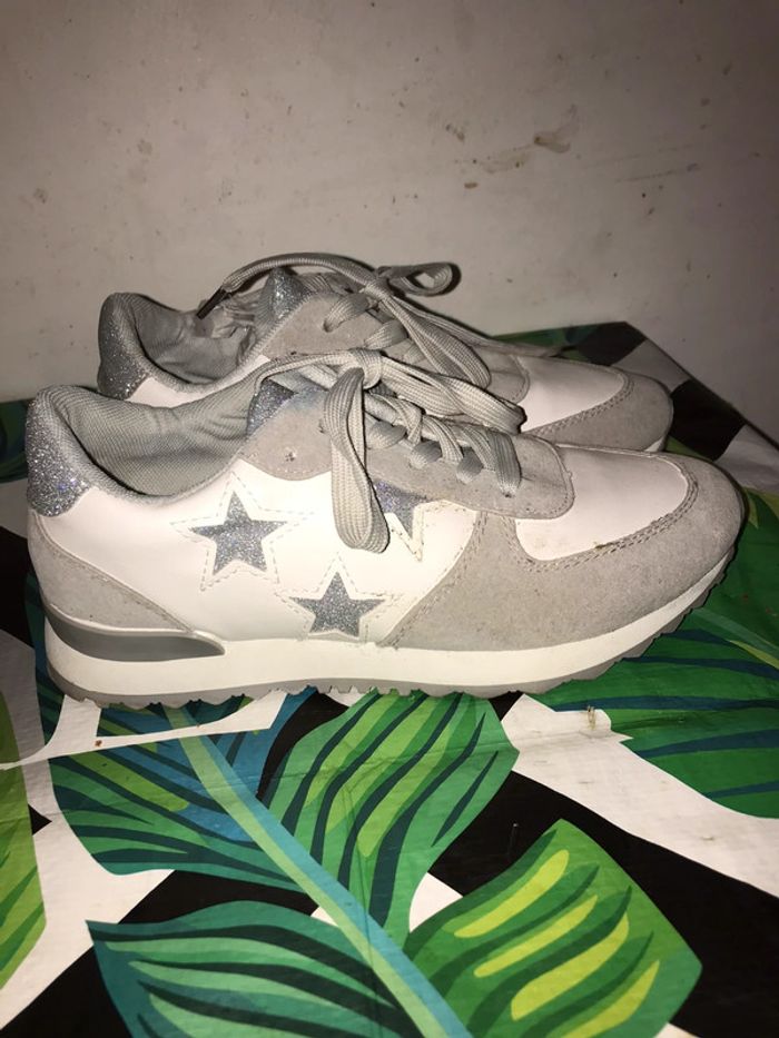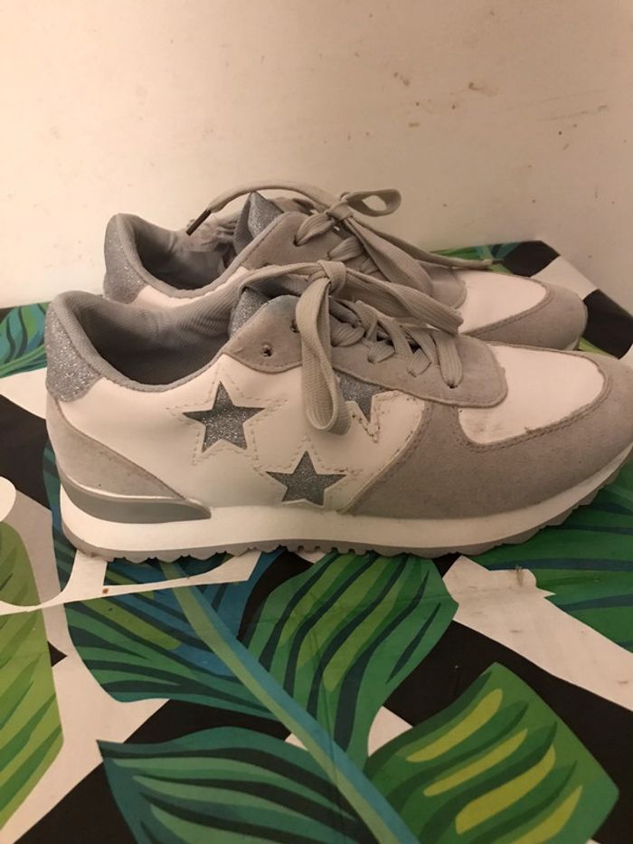 Basket femmes blanc et gris taille 38 marque C’M Paris neuf sans étiquette (portée deux fois je l’ai vont parce que son série .