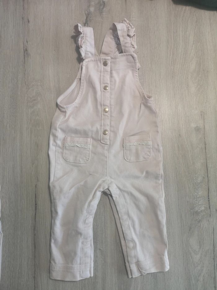 Salopette rose pale en jean stretch Parfait état Bretelles ajustables sur 2 longueurs 18 mois 80 cm 2 dispos si besoin pour jumelles