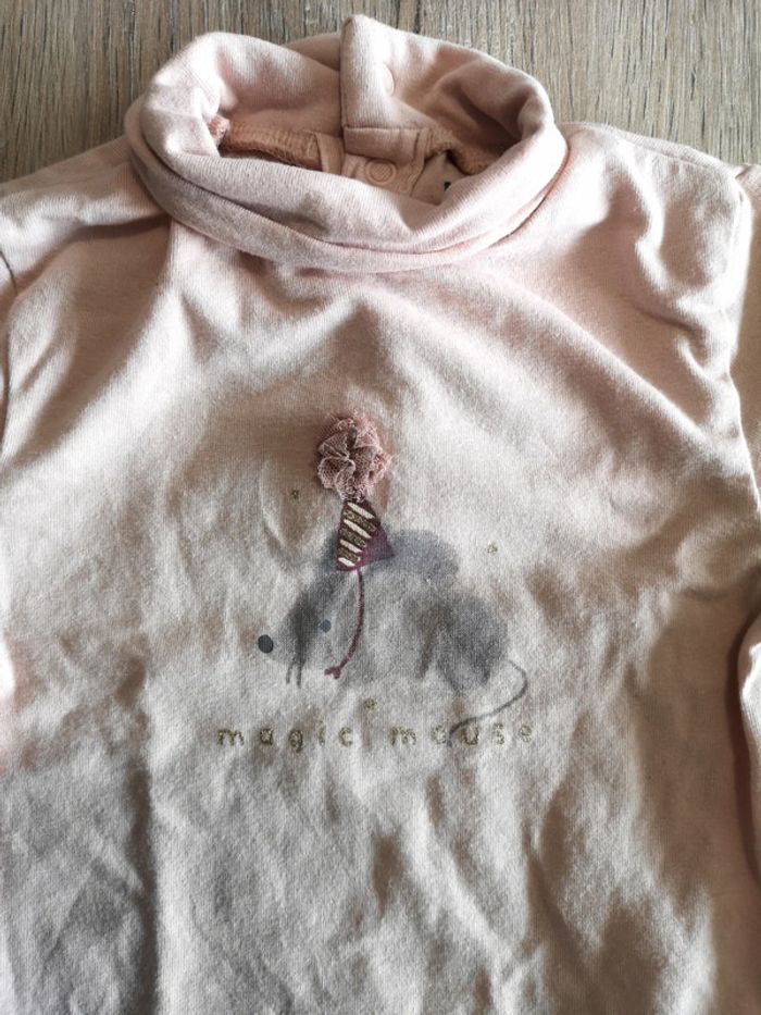Parfait état, peu portés car offerts un peu tard en taille. Col roulé/montant Rose pastel Motif petite souris 3 pressions dans le dos pour enfilage facile 18 mois 77-82 cm Taille un peu juste, porté plutôt entre 75 et 80 cm