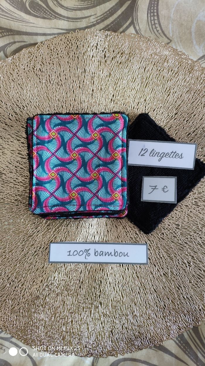 Tissu eko-tex français et éponge bambou noir 10 X10 cm pour bébé et démaquillante pour les mamans 😄