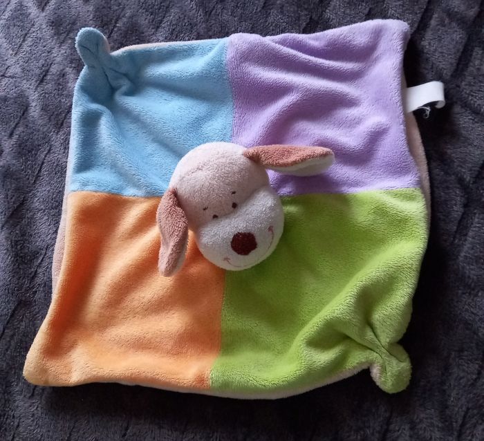 Doudou chien carré plat multicolore - photo numéro 1