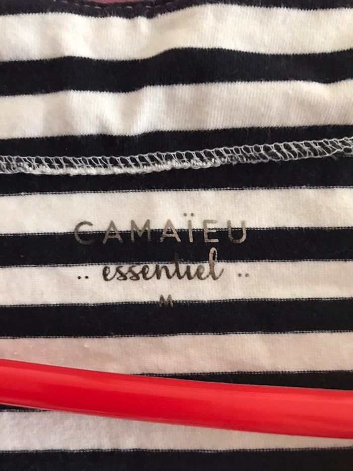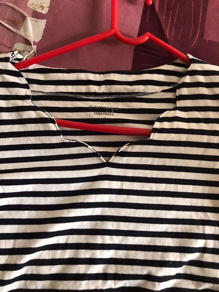 Pull femme demi manche couleur blanc arayure taille M marque camaïeu - photo numéro 6