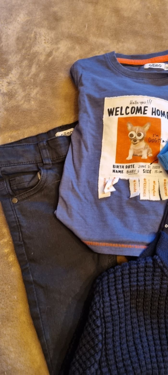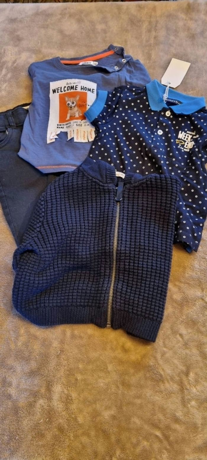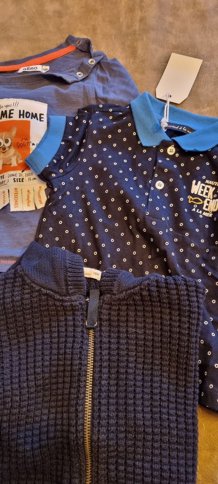 Un pantalon gemo 1 gilet zippé lc kids 1 polo neuf un week-end à la mer 1 manche longuevgemo 18 mois