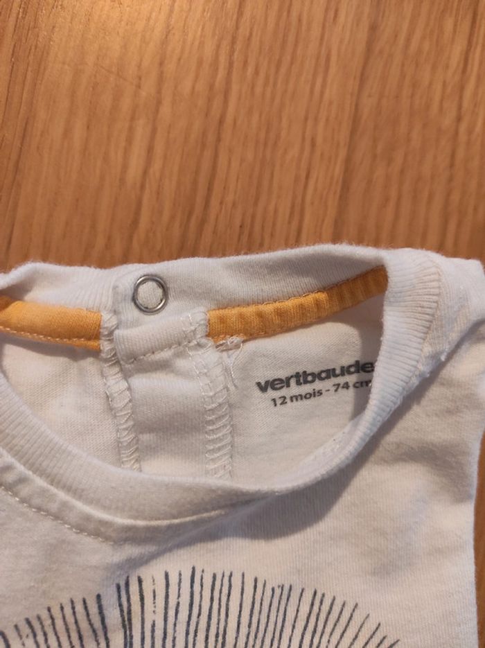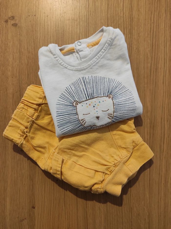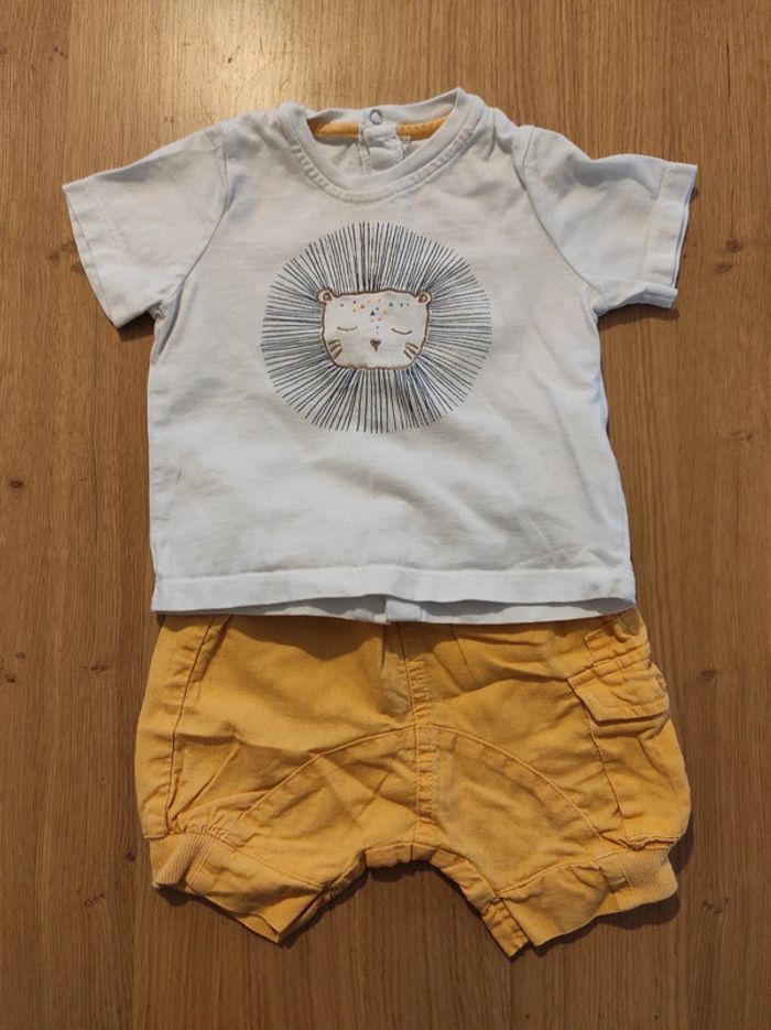 Petit ensemble short + tee-shirt à manches courtes Vertbaudet. Le tee-shirt, à motif brodé 🦁 s'ouvre complètement au dos En très bon état, taille 12 mois.