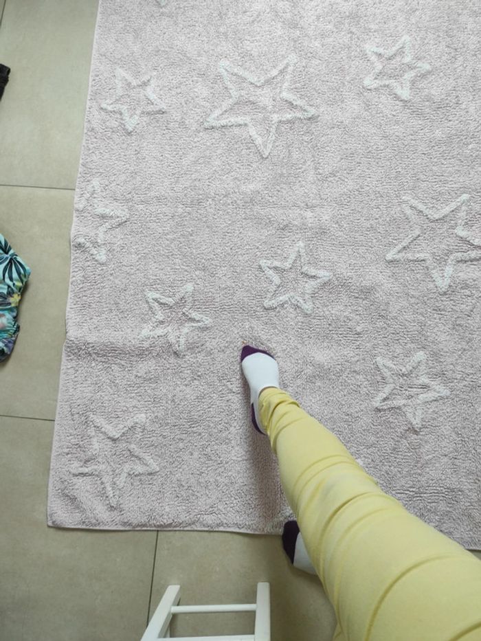 Très jolie tapis pour chambre d'enfant taille 120x160. Se lave facilement à la machine. Une tâche orange voir photo. Je le vends car ma fille est allergique aux acariens. #deco_mayetceline