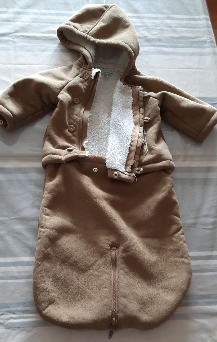 Chancelière bébé en suédine, peut se transformer en manteau , car il y a des pression au milieu. Ver