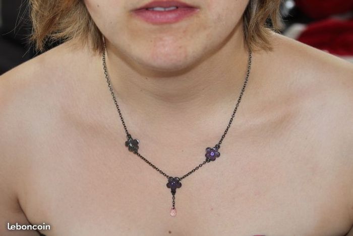Je vend un ensemble collier + boucle d'oreille couleur violet forme fleur Sympa surtout en été avec un petit débardeur #collierdiaboloflo