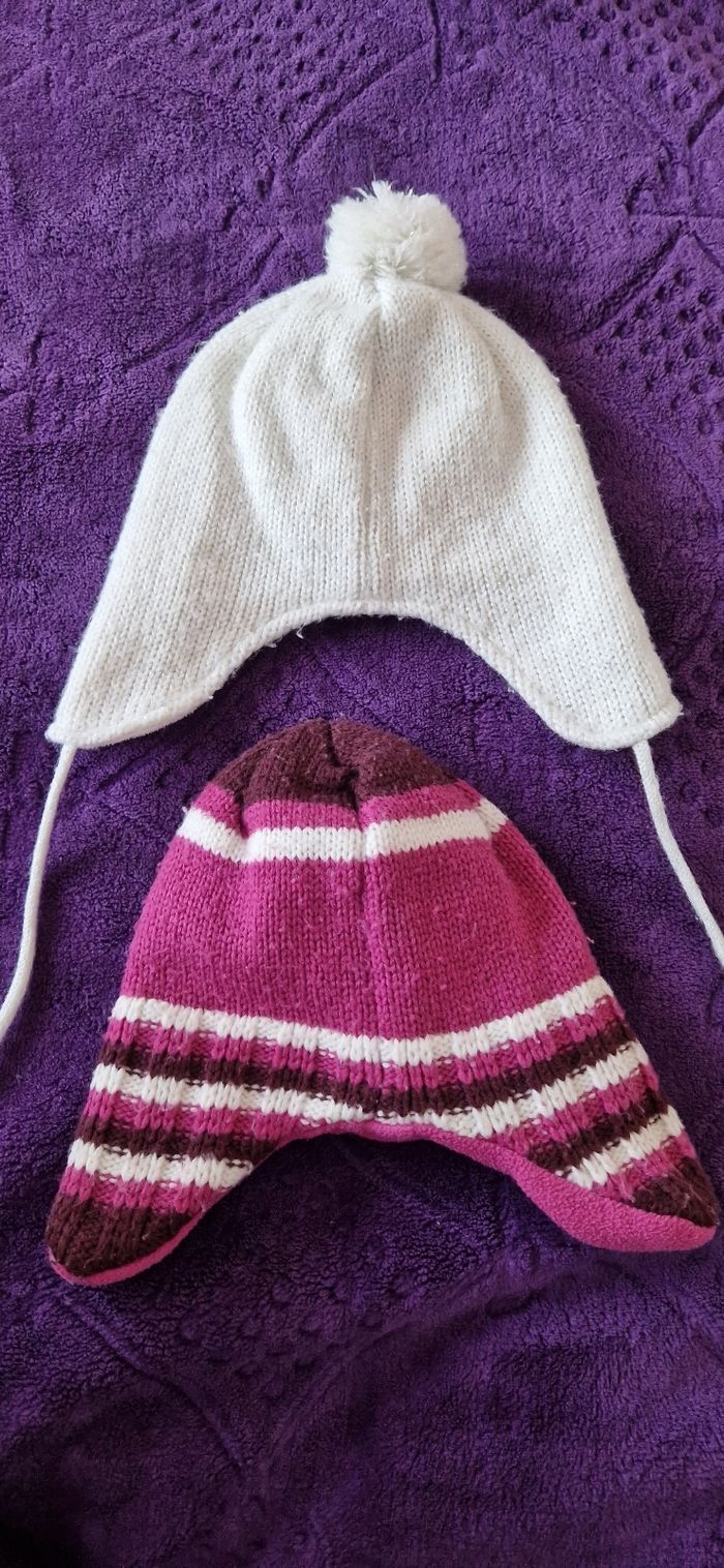 Lot de 2 bonnets pour fille taille 49 Un de marque kiabi Bon état avec des bouloches