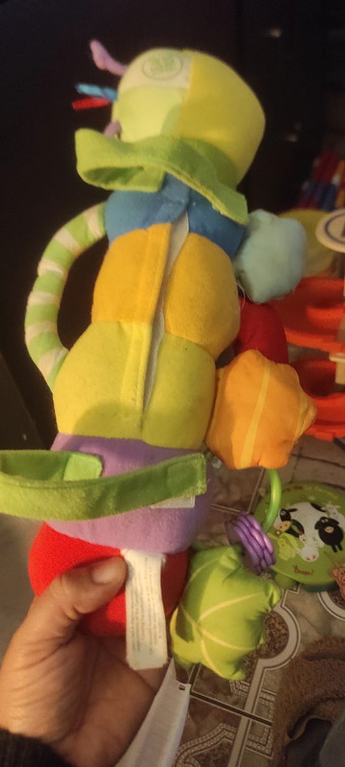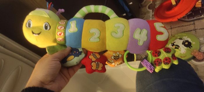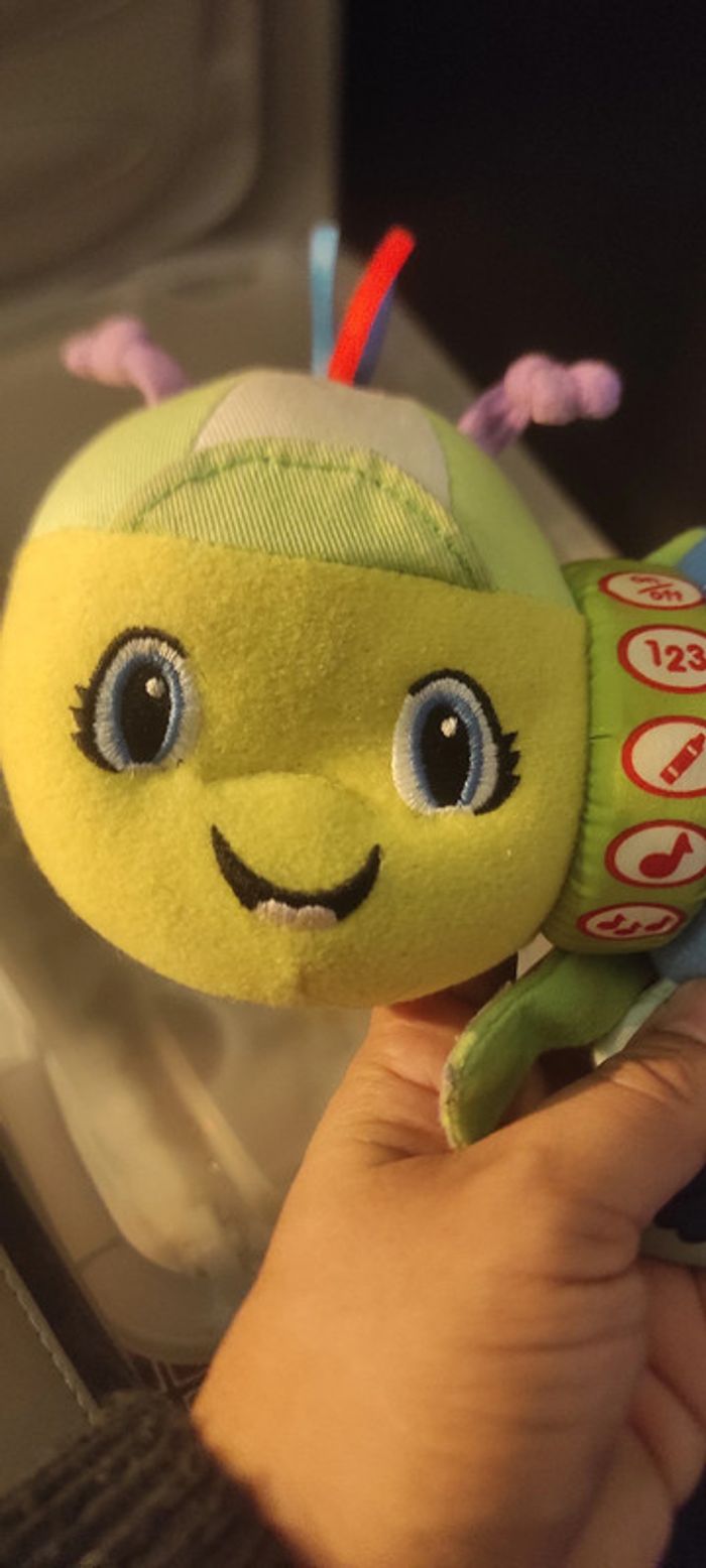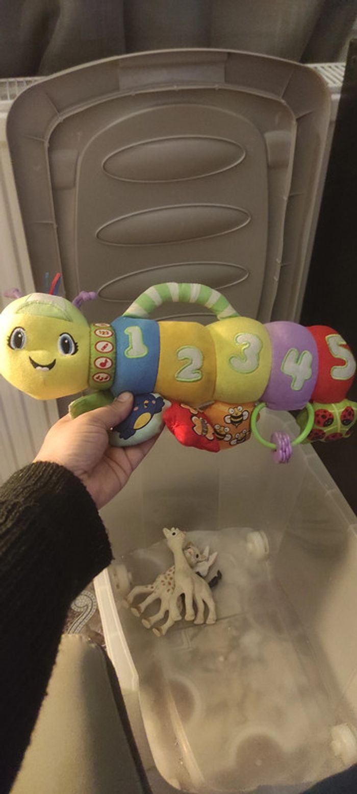 Chenille matière peluche Sons musiques boutons tissu ou il faut appuyer pour lancer des musiques Très chouette A fait ses preuves Envoi rapide et soigné