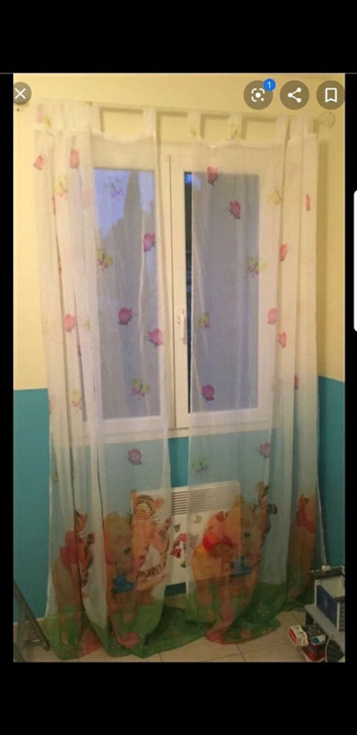 Rideaux fins x2, taille environ 1m de large sur 2m40 de hauteur. Rideaux epais x2, un peu occultant, environ 1m20 de large sur 2m40 de hauteur. Acheté 60€ + 40€ de couturière pour les mettre a une hauteur "normale". Vends 40€ l'ensemble.
