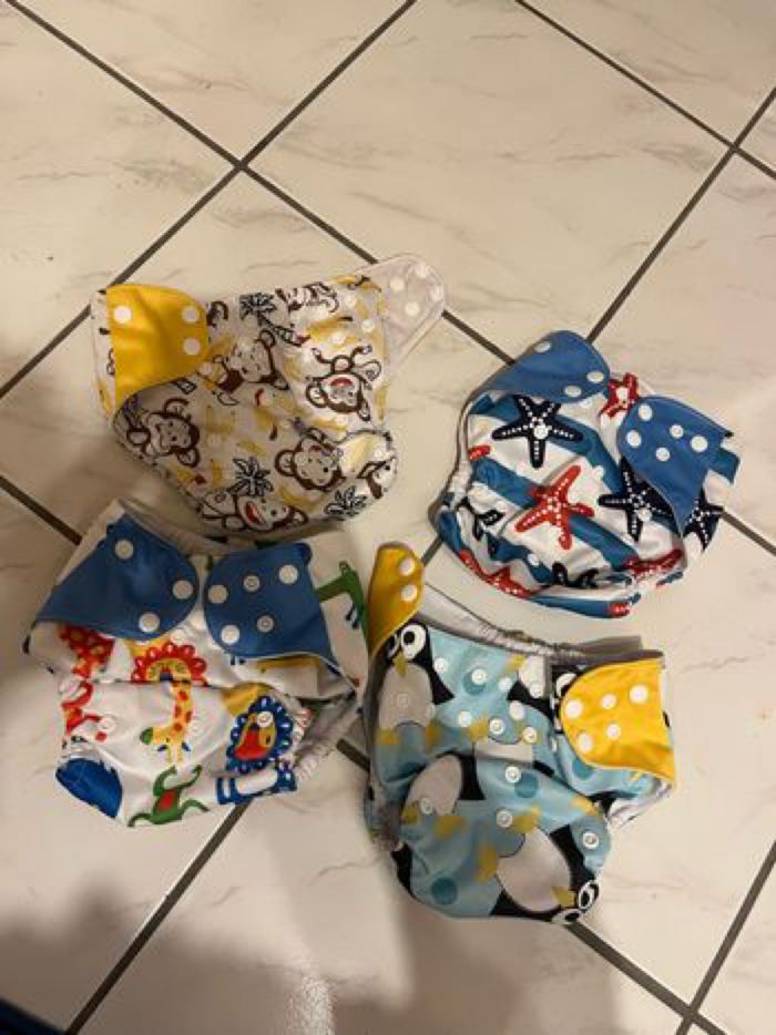 Couches lavables te1, neuve jamais servis, juste laver une fois. Quelques peluches sur la matière intérieure sur deux deux d'entre elle, mais s'était liée au lavage. Je n'ai pas utilisé de te1 que des te2. Prévoir des inserts à y rajouter dedans Évolutives jusqu'à la propreté