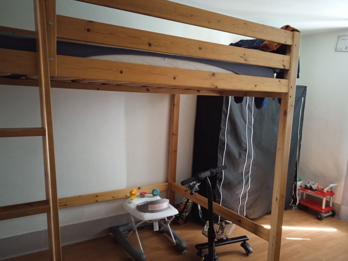 Bonjour vend lit mezzanine 140×190 en bois cause déménagement